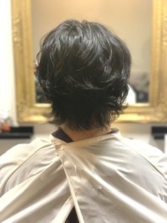 襟足を長めに残したスタイルに緩めのニュアンスパーマ♩